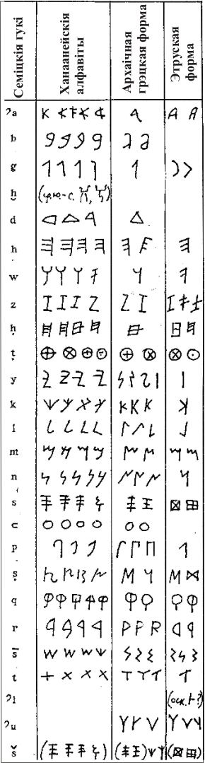 Старажытныя алфавіты (хананейскія, этрускі, архаічны грэцкі)