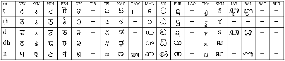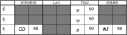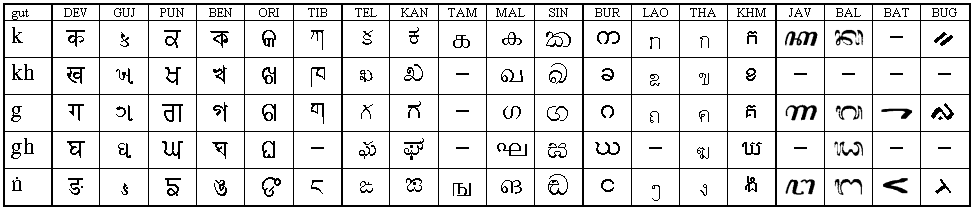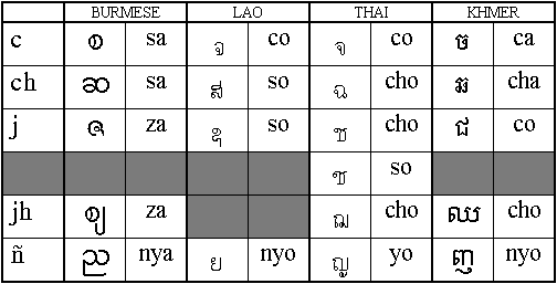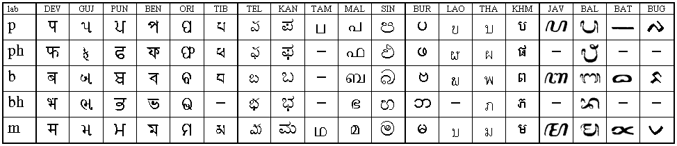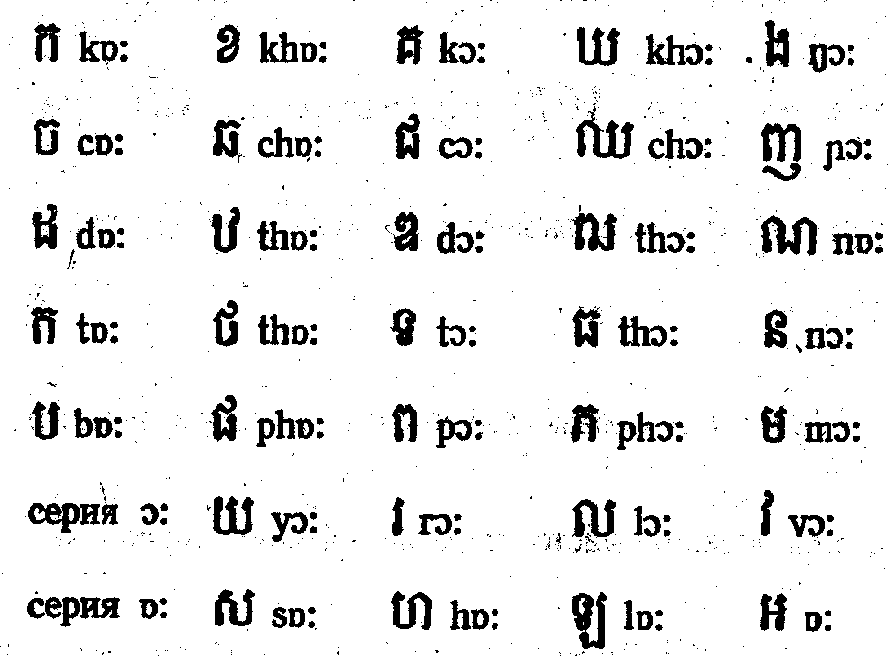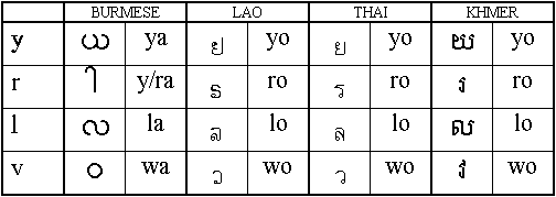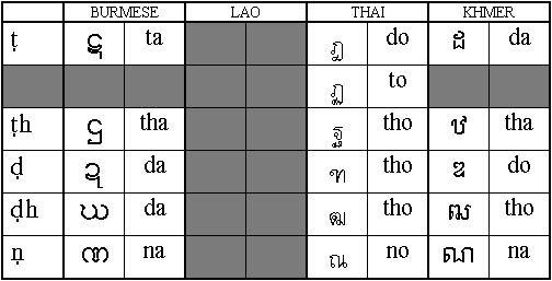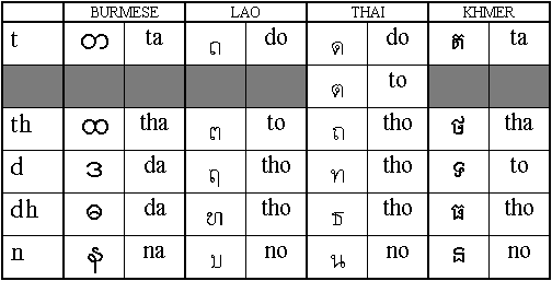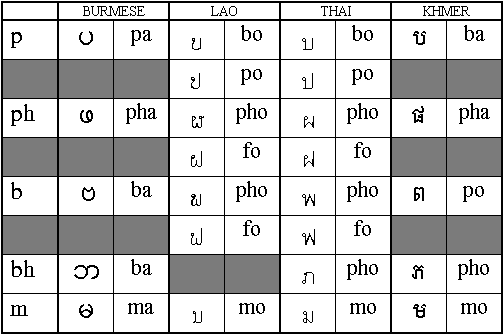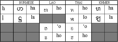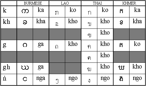 Індакітайскія алфавіты (Бірманскі (М’янмарскі), Лаоскі, Тайскі, Кхмерскі)