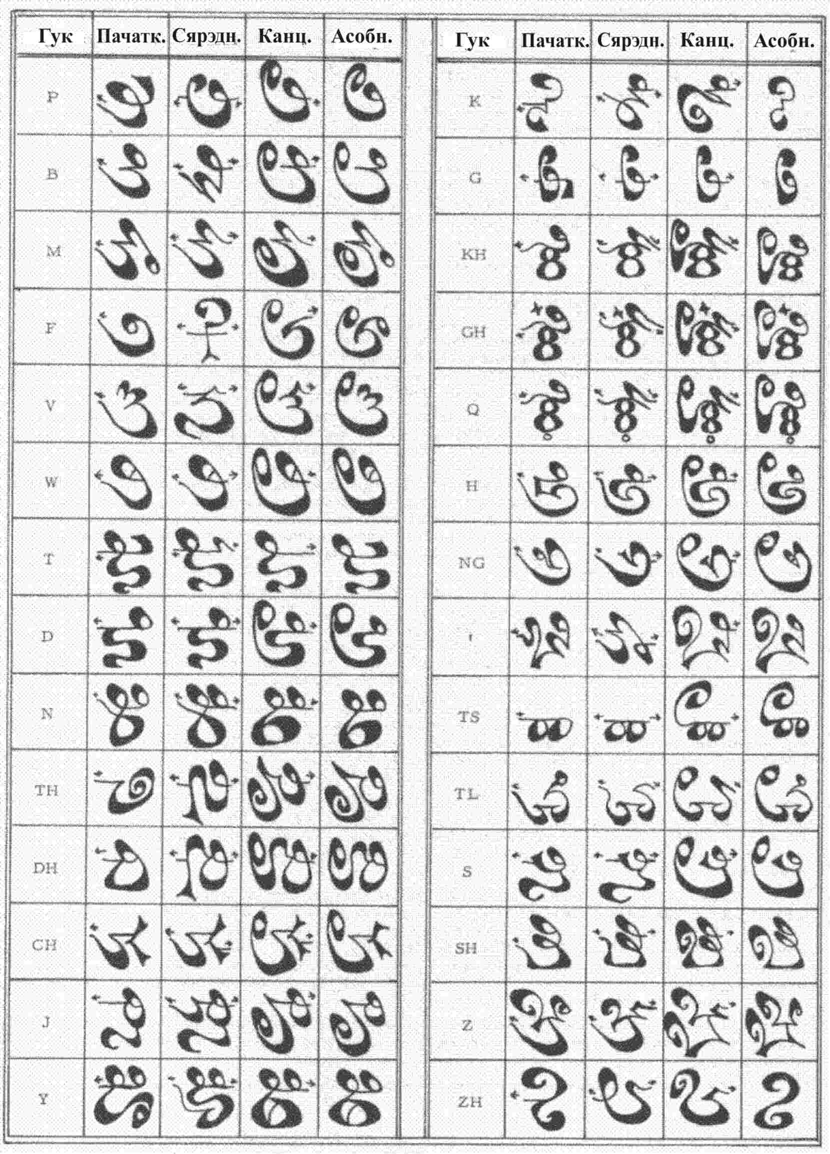 Штучныя алфавіты-прыдумкі: Тсальяні і каштры